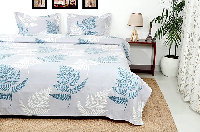 Rayna Decor Premium Supersoft 200 TC Printed Double Bed Sheet with 2 Pillow Covers (90X100 Inches,Blue)